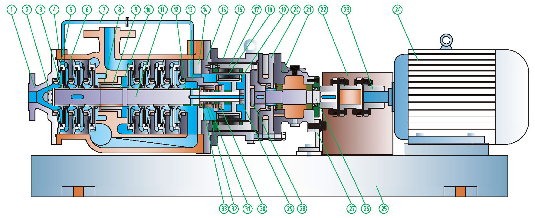 1.6 to 6.3 MPaМногоступенчатый магнитный насос без утечек