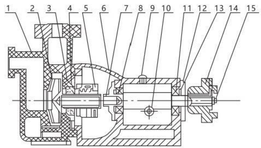 Самовсасывающий насос FPZ, устойчивый к коррозии, изготавливается методом однократного литья под давлением из армированного полипропилена (RPP). Он обладает высокой механической прочностью, превосходной коррозионной стойкостью и имеет уникальную конструкцию. Внутри корпуса насоса расположены всасывающая камера, камера хранения жидкости, камера обратного клапана жидкости, камера разделения газа и жидкости и возвратный патрубок. Перед первым запуском насос необходимо заполнить жидкостью только один раз, и для последующей эксплуатации повторная заливка не требуется. На всасывающем трубопроводе установлен погружной клапан. Во время работы торцевое уплотнение не требует дополнительного охлаждения водой. Насос прост и безопасен в эксплуатации, не имеет утечек. Он является идеальной заменой погружным насосам и подходит для перекачивания различных агрессивных сред при температуре от 14 °C до 80 °C (RPP).
